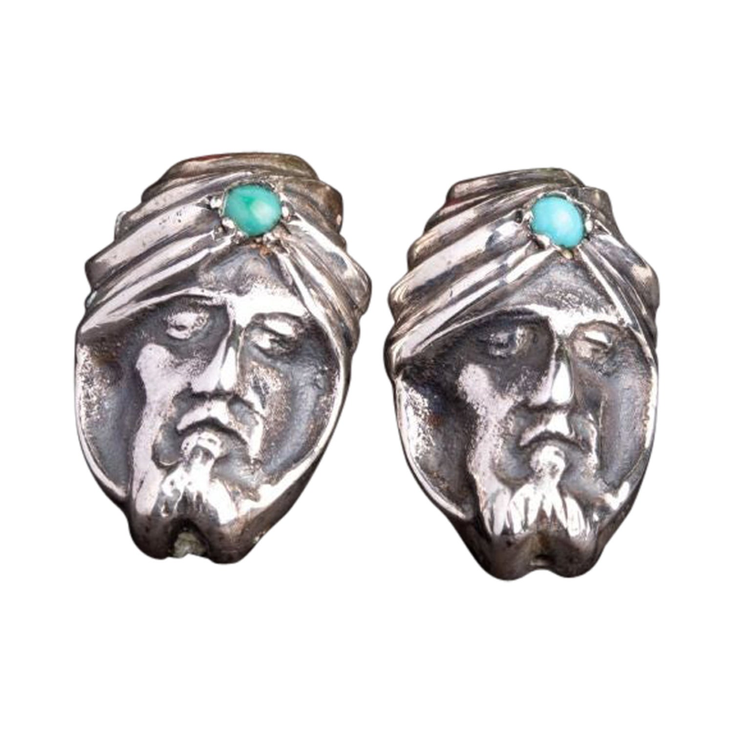 Antique Silver Turquoise Earrings Oriental Turban Man Earrings At 1stdibs