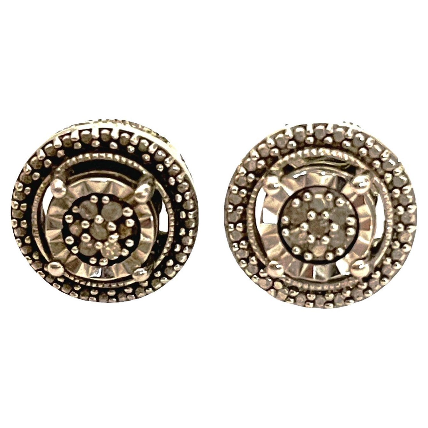 New Sterling Diamond Halo Post Earrings For Sale At 1stdibs